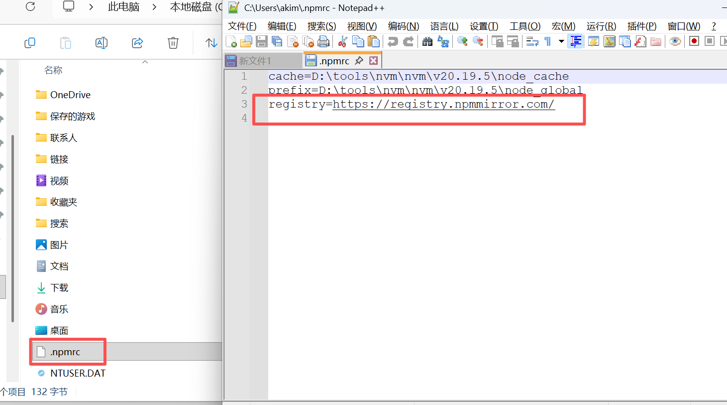 配置 node 的 prefix(包全局路径)和 cache (缓存路径):